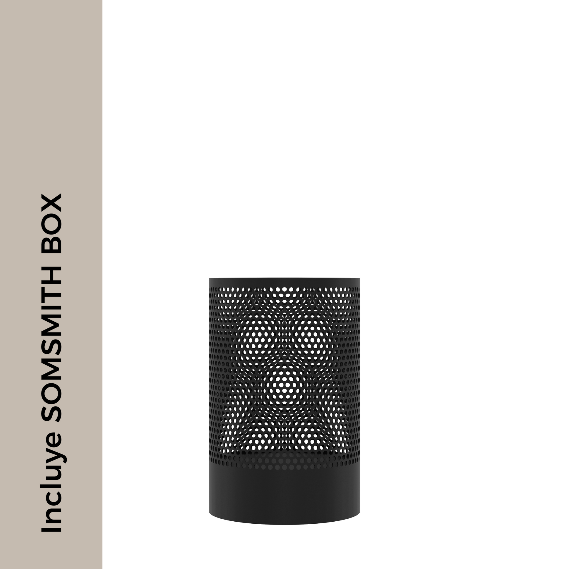 Compartimento SOMSMITH extraíble en la base para guardar objetos. Dimensiones del recipiente Ø18 x 5 cm.